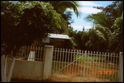 The first thing I noticed upon arrival in Costa Rica was the prevalence of bars around everything. Windows, doors, yards - they were all protected by bars of some sort or another. In one neighborhood close to our first hotel, Herradura, the expensive homes even had guards posted in the front yard. In the photo above, a lower-middle class home with a dirt driveway, an iron fence surrounds the entire yard.