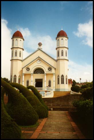 You'll find more Spanish architecture in Southern California than you will in Costa Rica. An exception is this great church we visited on our way to the Hot Springs in Tabacon. In the foreground is an amazing topiary garden, where one guy has been pruning and shaping the cypress trees for 35 years.