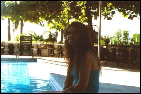 Our favorite spot was the La Mariposa (butterfly) hotel south of Quepos on the pacific Ocean. It sits on a ridge jutting seaward and offers a better view than you could get anywhere else in the area. Above, Sharon sits poolside waiting for me to get her another strawberry dacquiri.