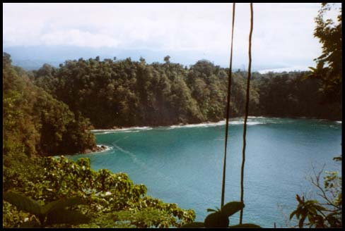 Here is an island off the point of Manuel Antonio. The waters off the coast are full of small, uninhabited islands. We quickly learned that in jungle, it's hot and steamy, but on the beach there is usually a nice breeze to keep you cool. Except for one trip in the mountains to see a volcano, we only needed shorts and t-shirts for clothing. A key tip if you like to travel light.