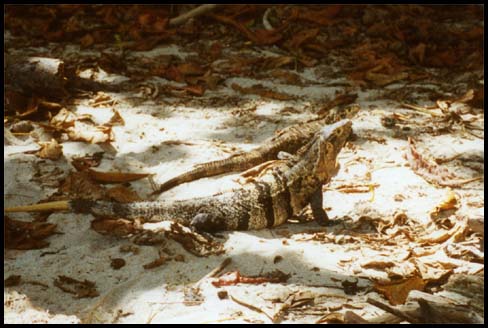 We had to share our beach space with a pair of iguanas. Like many of the other beach-goers, they had cleared an opening on the sand and didn't appear threatened when Sharon spread our beach towel nearby.