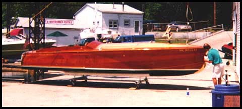 When Bruce Hutchinson of Richland, Michigan is doing whatever floats his boat, he's making them; that is, boats. Bruce was the grand prizewinner in the 'Post Your Project Contest' contest, a statewide search for Michigan's most dynamic home-made woodworking project sponsored by L.L. Johnson Lumber company in conjunction with Profiles Magazine. Bruce's winning entry, chosen by woodworking experts at L.L. Johnson Lumber Company, is a solid mahogany, 16-foot wooden boat that took more than 1,000 hours to make. Bruce, who is a self-taught woodworker, has worked wood seriously since his retirement seven years ago. "I suppose my 7th grade woodworking class could be considered some formal training," he says. "I remember well how Mr. Taylor, my 7th grade woodworking teacher, taught us to use the hand plane. Probably the best thing I could have learned. He made us take it apart, clean it, tune it and sharpen it. We worked on it for three weeks solid, never touching a piece of wood. I was starting to wonder why they called the class wood shop. When I was all done with it, he took it apart, smashed it all up and told us to do it over again. It seemed cruel at the time but it was actually one of the best learning experiences I've ever had with wood." Bruce spent many years in marketing and general management working for the Upjohn Company in Kalamazoo, Michigan. Throughout the years he had occasional opportunities for woodworking, building a midget car when he was a kid, a small sailboat in the early 60s and a house in the 70s. It was only after his retirement in 1992 that he began a serious avocation with woodworking. "I'm at it almost everyday," he says. "I guess I've kind of neglected the yard work a little." His recently completed award-winning project, a solid mahogany speedboat made completely by hand in his 20 by 40-foot home workshop, has become his pride and joy. The project sports an inboard, 305 Chevy marine conversion engine that propels the craft at speeds upward to 50 mph. The motor itself weighs over 900 pounds says Bruce. "I had to build a gantry crane just to lift it into the boat." The crane, of course, built by hand and also out of wood. His home shop is nothing out of range for the average woodworker. It houses a myriad of power tools which includes a $300 Craftsman table saw, a 50-year-old radial arm saw, a lathe, drill press, jig saw, antique Powermatic band saw, bench top planer, and an assortment of hand sanders and power tools, most of them Delta. His favorite woods are Mahogany (although he says its hard to steam in his home-made tube steamer and steam box), poplar (which he's used for deck framing, in boats, and for sailboat masts), ash, and white oak. His favorite part of building the boat was framing and planking it. The worst part of the project, he says, was fairing and sanding. "The fairing took hours and hours of hand carving and chiseling. It gets a little difficult with the arthritis," he says. The boat is made entirely from Oak (used for its frames) and with Genuine and Philippine Mahogany for the bottom, sides and deck. It's a real beauty, Bruce! And for his grand prize Bruce received an award of tools from L.L. Johnson Lumber Company, presented at their Wood Expo '99 on September 10th and 11th. The boat was proudly displayed there to the envy of other wood loving craftsman. Robert Anthony Robinson Editors Note: Robert is the editor of Profiles Magazine and you can find other interesting profiles at their website. |