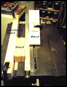 to plane off any to get a flat surface. Cheers. :{) Lorne E-Mail: I would very much like to hear your comments lngush@shaw.caAddenda: Some people have asked where you can get 1/8 and 1/4 inch plywood today. It is getting scarce isn't it? One idea is to use solid stock which you can produce yourself on your planer or buy from almost any good lumber store. If you are one of those fortunate enough to own one of those Jigs that use incremental tape measures to space their cuts or similar then you don't even need the Stack. You can just dial in the increments that you need on your jig. © Lorne N. Gushulak 1997,98,99 |