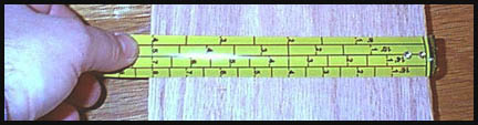 Now for the part that makes the "Tape/Rule" different - the rule for measuring surface area/board feet of hardwood. (This is also where the double hook is quite helpful). The rule is found on the underside of the tape and extends out for an 8 foot width. Instructions for its use are included. Also included is an information page about how hardwood lumber is measured and graded in general. Not being an aficionado of measuring board feet, after several readings of the instructions I was still vague on its use until I figured out that you measure the WIDTH of the board with the rule (Doh!). Perhaps a graphic of how to place the rule on a board would be helpful for the ignorant - like me. I tested the rule on a couple of 3/4 inch boards, playing like they were 1 inch thick. For an 8 foot board, 12-1/4 inches wide, I came up with 8 board feet using the rule and 8.2 board feet by calculation. Likewise for a 9 foot board (7-3/8 in. wide), 5.5 with the rule and 5.53 by calculation. To test the rule further I noticed on the instruction card that it says "Easily and Accurately measure anything, including board feet!", so I did and discovered that the surface area of my wife is 25 sq. ft. and contains 16.7 board feet. The rule works! One minor improvement would be to put a "burr" on the inside of the hook to help grab and hold on to the material a little better. Another would be a couple of complete examples for computing surface area and board feet. If I had seen this tape in a store and the price was right I would probably buy it just to try it. I can see how having a tape and a rule all in one would be helpful to the professional woodworker, and how it could also help educate the garage woodworker for learning the mysteries of board foot calculations. Having used the tape measure a bit, I can recommend it to anyone looking for a 16 foot tape measure. I've already replaced the tape measure I was using with this one. Why? Because I like it. Larry Layne Second Review This is a standard 16' tape measure with a twist. It has a board foot table on the back of the tape. With a little practice, it is easy to quickly "measure" the board feet in almost any board. The quality of the tape is acceptable. I prefer tapes with a metal case, primarily because I can be very abusive. The plastic lanyard is not necessary, and in fact broke before the first time I used the tape. I was going to take it off anyway. However, a plus with the plastic case is the rule is lightweight. On the primary side of the tape it is very standard. The back of the blade is what makes this tape special. The table that runs the length of the rule is designed to allow quick surface measure on any 4-quarter stock. Detailed instructions on the use of the table come with the rule and can be found on the company website at: www.tapeandrule.com. Essentially, the width of the board is measured with the rule. Note: the tape has tab on both the top and bottom so it can be hooked on a board with either side showing. Buy measuring the width with the back of the tape, the user gets a direct surface measure of any board that is 8', 10', 14, or 16' long. These are the lengths set-up in the table. The 12' long board can be quickly measured using the standard side of the rule. For board lengths less than 8', use the existing table. Find the measurement in the table that corresponds with twice the length of your board, ex: 8' for a 4' board. And divide the given surface measurement from the table in half. Boards that fall in between values on the table, 9', 11' , 13' and 15', use the values from the board length on either side, 8' and 10', for a 9' board. Take the two measures and average them. I know this all sounds very complicated. I am not a technical writer. It is better-explained and shown with pictures on the website. It takes some getting used to but as soon as you get the hang of reading the table calculating surface measure of almost any board is very quick and easy. This tape measure is advertised as the "first tape truly designed for the woodworker." It is a quality tape and a reasonable price. I personally will continue to use my small 12' rule when working around in my shop. But, the "woodworkers rule" will definitely accompany me on all my future trips to the lumberyard. Sandy Altizer Editor's note: More than 25 years ago, yours truly