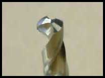 Along with the Drill Doctor is a simply great video explaining how to operate the machine. After one viewing, I was off to the shop - no need to open the manual. (But I'm sure there is some important safety and maintenance stuff in there so you better read it! ;)) Anyway, I decided to test the machine by clamping a 1/4" thick bar of aluminum to the drill press table and drilling the first hole with a brand new bit - a Hansen 1/4". I wanted to see how close the Drill Doctor came to re-creating that just new sharpness. In the picture above, the new hole is the one on the right.