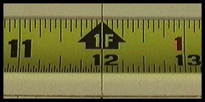 | The next test was to measure the accuracy of each tape at 12". To make this test I needed an actual benchmark. I have several stamped or etched steel rules and comparing them to each other revealed no discernible variation between them. Using a Fowler 12" machinist rule, I placed a square line 12" from the hook edge of the testing board and looked at the tapes again to see how they matched up to the ruler. |