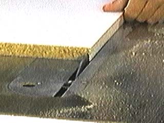 Clean Melamine Edges: By Jim Mattson I like to use melamine for the interiors of built-ins, behind doors and drawers, and the insides of kitchen cabinets. It's cleanability makes it ideal for kids rooms and a variety of working surfaces. Most of my shop's storage cabinets were quickly made of this plastic-coated particleboard and I always keep some pieces around for jigs and fixtures. Aside from it's heaviness, melamine's greatest drawback is the difficulty encountered when trying to get a clean cut off the tablesaw. The top side, where the blade enters the panel, is easy to keep smooth while the bottom side, where the blade exits, comes out chipped and ragged. Large manufacturers tackle this problem with a variety of machines like CNC routers and scoring panel saws. Sadly, these are usually beyond the reach of those who operate their trade or hobby from a one-person shop. There are also special sawblades available which advertise clean cutting ability, but my experience leads me to believe the durability of their edges doesn't justify their high price tags. Luckily, most cuts we'd make building melamine cabinets don't require squeaky clean edges. Backs, some sides, tops and bottoms might be out of sight from the glaring light of scrutiny. Ends which are buried in dados and rabbets, and edges tucked behind a faceframe are also exempt. The problems arise when cutting shelves, dividers and doors. Often these pieces are equally visible from both sides, and the perfectionist in each of us requires a clean cut. So, what's a cabinetmaker to do??? The following are two techniques I use when working melamine which anyone can employ with only the most rudimentary shop equipment. The first needs a router table (or jointer with carbide knives) and results in the best edges you can get. The second is called half-ripping and uses a tablesaw to produce highly acceptable edges. The Router Table Method