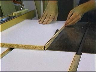 This method also works well to straighten any edge irregularities left over from tablesawing. If your melamine crooks slightly after sawing, you can rout the concave edge and re-run the opposite edge through the saw to achieve true parallelness. If you have problems getting true uniformity of sizes, (some pieces smaller than others), you can use one piece as a template for flush-trimming the rest with a hand-held router and top bearing bit. With large jobs, it might be worthwhile to install a vacuum clamping system on your template, but I like the following technique better for it's speed. Half-ripping on the Tablesaw