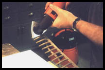 What I ended up with was severe drips and runs. These were on the edge of the chessboard top which fit into a framework via a tongue and groove configuration. I never got around to fixing this mess simply because I was not looking forward to dealing with it. The mitered frame is only 1/2" thick and 3/8" wide before it meets the chessboard panel so there is not too much room to move and any oversanding would show up. I didn't want to make matters worse. I held my breath and got ready to work on the board. Here goes... To make a long story short; with little very little effort and hardly any experience, all areas of concern were repaired. I started with 60 grit paper and went through the grits up to 220. The chessboard is starting to receive a new finish and I couldn't be happier. The Fein MultiMaster allowed this to happen. This tool was made for tight spots that require precision. And because the sanding pads can be turned, you are able to get a lot of work from each pad.