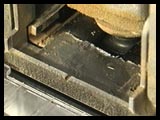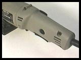 The position of the lock-on button was a little awkward at first since it sits too far back for easy access. After a couple hours you get entirely used to it and realize this might be better from a safety standpoint - no accidental engagements. The second handle, the one used to stabilize the machine during plunging is normally mounted atop the motor where it's almost useless. This has caused me and many other woodworkers to abandon this handle and apply pressure directly to the top of the fence. Porter-Cable mounted the 557's handle to the back of the fence mount where it doesn't move during use - a much better place for it. Still, I want one mounted to the fence itself. Sorry. The next surprise comes after starting the 557 up. The noise it makes is just a tad rougher than other biscuit machines but comments to the Tool Survey suggest this is normal. It isn't self-destructing. Oddly, I've noticed this with other portable power tools and I'm starting to wonder what gives? Any tool designers in the audience? The Killer The Porter-Cable 557 has one thing other biscuit joiners don't have and that's a slot open to the front of the base for the saw arbor. This larger slot provides the additional 1"+ plunging clearance needed for engaging the tiny blade when cutting #FF size slots. Where other machines have a slight opening on top of the base, the 557's is relatively huge, letting small sprits of dust to come swirling up around the machine. Once free from the saw's slipstream, this dust mingles with exhaust from the motor's cooling fan to get it in your face in a hurry. Now I don't usually wear a mask and goggles for biscuiting. I don't hook my Virutex to a vacuum either. Years of experience have told me where the dust is going to go and I avoid it. It isn't that easy with the P-C. Removing the bag helps get more dust out the machine's exhaust port. My friends put a piece of duct tape over the opening (photo above) to help contain the dust. Still, it was a surprise the first time I tried it. I suspect a vacuum attached would help a lot. This isn't to mean you can't adapt to the trajectory of the dust. Biscuiting from the side gets you effectively out of the target range. If you're already accustomed to biscuiting with other machines, the transition to the P-C will be disappointing. Plan on changing your stance. Update! - I have it on reliable authority Porter-Cable has fixed this problem with their new machines. Given that many of the older machines are still out there, if you find yourself wanting to buy one second-hand, it might be wise to take it for a test drive first. - JM |