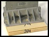 The P-C 557 Other Impressions This wide opening also makes it inferior when positioning slots closely to the edge on outside corners. The fence isn't so stiff that when a corner falls into the opening, the weight of the machine doesn't cause the slot to go in at a slight angle. Plan on centering even smaller biscuits at least 1 3/4" from any edge to get the proper support. Fortunately Porter-Cable gives you an accessory you can slip over the fence much like the spacer which comes with Lamello machines. This slip-on plastic alignment plate is clear and has handy outside indexing marks to outline edges when cutting smaller slots. If you buy the P-C 557 for it's narrow stock capabilities and do woodworking for a living, order a second one of these plastic plates when you get your machine. From experience with Lamello machines it's safe to say it won't stand up too long to the rigors of commercial woodworking. You also need to remove it for any interior "T" joints as the fence won't fold flat while the plastic alignment plate is in position. Gauge Blocks Lately biscuit machines have evolved into sophisticated adjustment mechanisms providing a wide array of possibilities. For the most part these advances don't sacrifice any of the older functionality with the possible exception of the 557. There are three reasons for continuing the use of gauge blocks with the current crop of biscuiters. If your fence has some play and doesn't lock down completely parallel to the base, a gauge block will fix it. The second reason involves quickly moving to favorite fence heights. When you find yourself returning often to the same depth, make a block so you don't have to mess with scales and the errors which can occur. The best reason for gauge blocks prepares you for the unexpected. Many times they've saved my butt when I start gluing a job and realize I missed a slot. No big deal if I haven't changed the fence but a real pain if I have. With glue drying on the other side of the joint, there isn't time to fuss with finding the previous position of the fence. A gauge block makes this adjustment speedy and exact.