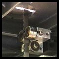 At first, my inspection focused on which set to pick to help transform my saw into a precision cutting machine, but as I delved deeper, another question arose, 'Do I need these things, anyway?' To be honest, my bandsawing isn't that sophisticated. Mostly my saw sits there close to my workbench collecting more dust than it makes. Early attempts at resawing wide stock left me with the impression this machine just isn't designed for such heavy duties, (especially when a friend has a Makita resaw I can use...:) I did try a 'WoodSlicer' blade from Highland Hardware and it changed my mind a little. Still, with so many other tools in the shop clamoring for attention, it pains me to admit my bandsaw sits idle most of the time. Mostly my bandsawing is limited to roughing out an ogee foot for a dresser, a handle for a cutting board, a race car for my neighbor's son, a panel blank for a template. Sometimes I'll resaw for a few hours if I can get a few extra pieces from the bandsaw's narrow kerf. Rarely do I ask for a finished cut from this machine and finished cuts are always best when one tries to get projects out the door on schedule! Can adding a set of bearings to your bandsaw give us more frequent finished cuts? Will our blades last longer? Lets find out. The Carter Guides Removing the table is no big deal on this machine - remove the two star wheels from below the trunnions and lift it off (after blade is removed). I tried it without removing the table and leaving the blade installed. This worked fine until I got to the lower section (left photo) when I had to remove the blade to slip the lower guides behind it. The two slotted machine screws from the original guides aren't used but are replaced with two Allen-wrench capscrews which seem much more substantial than the original.