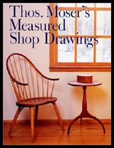Drawings Let's cut right to the chase - this book is an excellent reference set of drawings for furniture from the Shaker, Sheraton and Hepplewhite styles. If you have ever visited the Thomas Moser showrooms or paged through one of their catalogs, you are familiar with the simplicity, beauty and functionality of this company's pieces. The furniture is strongly based in the shaker design tradition and reflects years of refinement by the Moser cabinetmakers. Following a brief introduction written by Thomas Moser, in which he credits the many people who were involved in writing the book and designing the furniture, there is a short section on the background of the custom furniture design. The text of the book is divided into six main sections: Seating, Tables, Desks, Cases & Chests, Beds, and Miscellaneous Pieces. Each of these sections is introduced with a short discussion of relevant design and construction notes. Following the introduction are sets of drawings and detailed joinery sketches for each of the pieces featured. Most of these pieces show a black and white photo of the completed piece as well as the construction drawing. I should make it clear that this book was not written as a step by step construction manual. The drawings do provide enough detail for an intermediate or advanced woodworker to reproduce the pieces, but I feel a beginner would not have enough information to build most of the pieces. In the section on chairs, eleven designs