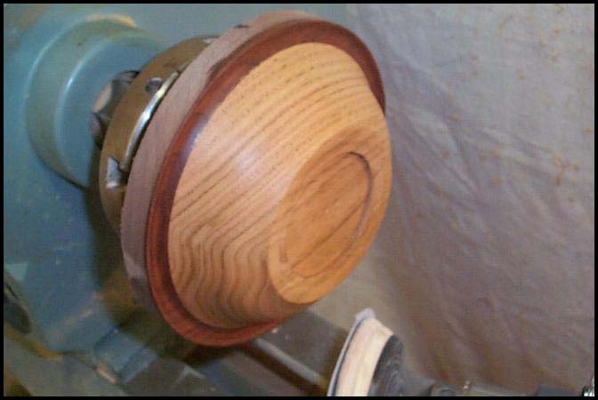 Photo 12: The finish has been applied and the white has disappeared. On the lathe bed you can see the 3" power sanding disk that I used when sanding the outside of the potpourri. We encourage all our visitors to send us their thoughts, suggestions and complaints. Copyright©1997-2004WWA |