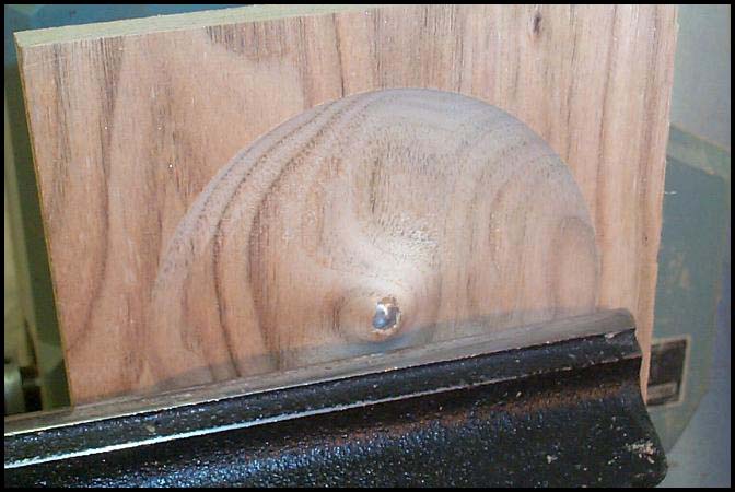 Photo 4: Here I have completed turning the recess and it is ready for sanding. I used a 1/4" bowl gouge to remove the bulk of the waste, then a wide, heavy round nosed scraper to fair the curve. Butternut is a quite soft wood and it is difficult to get a clean cut with a scraper. We encourage all our visitors to send us their thoughts, suggestions and complaints. Copyright©1997-2004WWA |