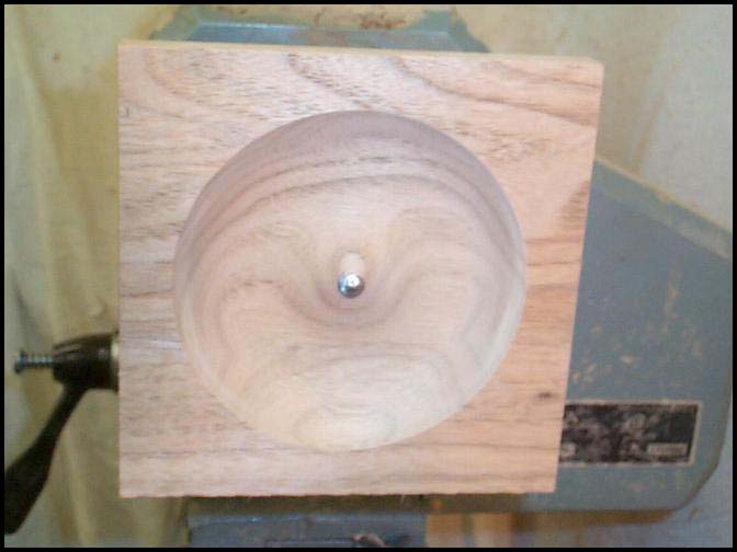 Photo 5: The recess in the top has now been sanded and is ready for finish. I use a product called Clapham's Salad Bowl finish, which is a blend of beeswax and mineral oil. I rub it into the wood with the lathe stopped, then buff it out with the lathe running. I try not to get any of the finish on the gluing surfaces, but it is still a good idea to wipe them down with mineral spirits prior to gluing the top and bottom together. We encourage all our visitors to send us their thoughts, suggestions and complaints. Copyright©1997-2004WWA |